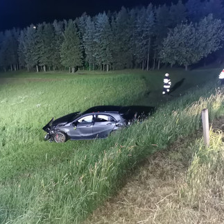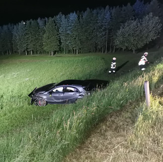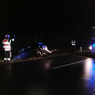 Am Freitag, den 15. Mai, kam es gegen 01:00 Uhr zu einem VU auf der B65. Ein PKW kam aus ungeklärter Ursache von der Fahrbahn ab und stürtzte über die Böschung auf eine Wiese.