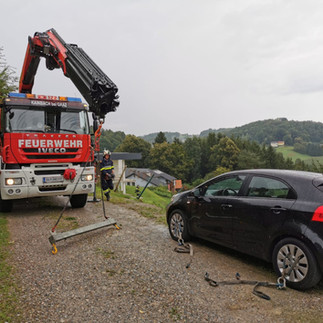Das WLF Kainbach bei Graz wurde als Unterstützung nach Nestelbach alarmiert. Aufgrund der starken Unwetter und Niederschläge begann eine Böschung mit darüber liegender Straße zu rutschen. Da ein PKW abzustürzen drohte und sich der Besitzer gerade im Ausland befand, wurde mittels Kran das Fahrzeug beiseite gehoben.