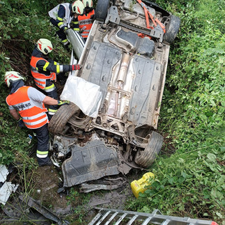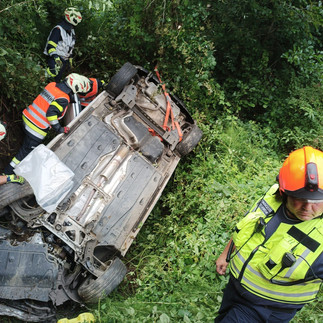 Durch die reibungslose Zusammenarbeit mit allen Einsatzkräften konnte eine Menschenrettung erfolgreich durchgeführt werden. Vielen Dank! Abschließend wurde der verunfallte PKW mit dem Kran unseres WLF-K aus dem Straßengraben geborgen. Außerdem wurden ausgelaufene Betriebsstoffe gebunden, um Umweltschäden zu vermeiden.