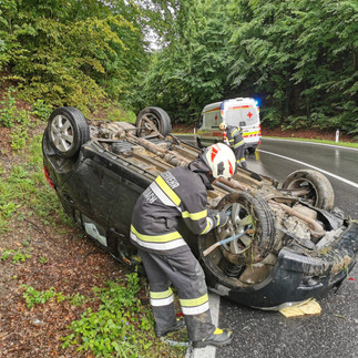 Ein von Gleisdorf kommender PKW kam aus ungeklärter Ursache in einer Kurve von der Straße ab, prallte gegen die Böschung und landete anschließend am Autodach. Die beiden Fahrzeuginsassen konnten sich selbst aus dem Fahrzeug befreien. Das Rote Kreuz war bereits vor eintreffen der Feuerwehr vor Ort.